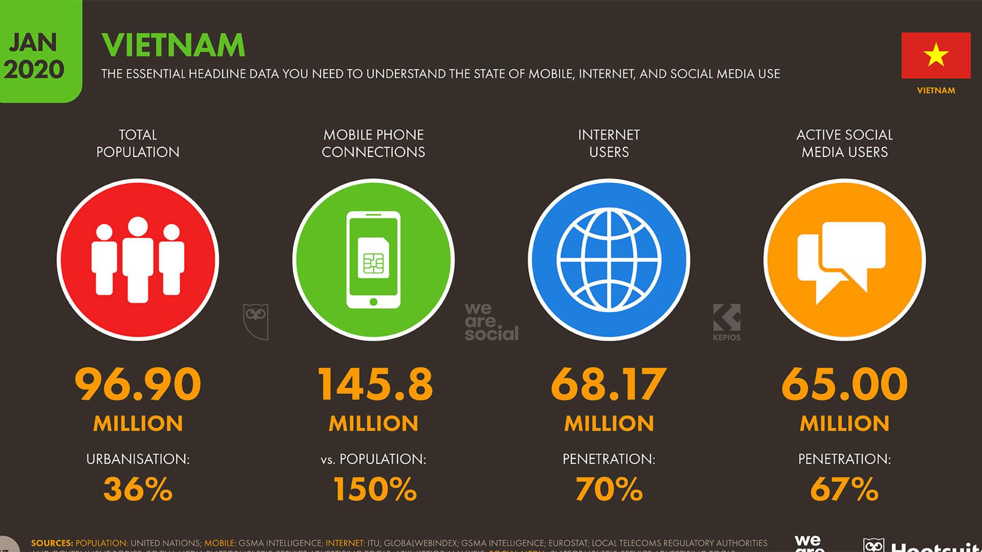 Việt Nam có hơn 68,7 triệu người sử dụng internet, đứng thứ 16 trên thế giới về lượng người dùng internet