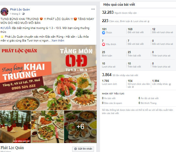 Rất nhiều nhà hàng, cafe ở Huế đã hài lòng với kết quả từ dịch vụ chăm sóc fanpage của Thai Thu Marketing