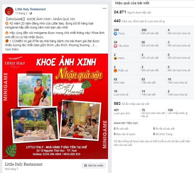 Một mini game của nhà hàng Little Italy Huế do team sáng tạo của Thai Thu Marketing tư vấn đã thu hút sự quan tâm và tham gia của khách hàng