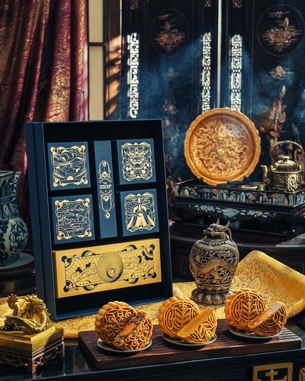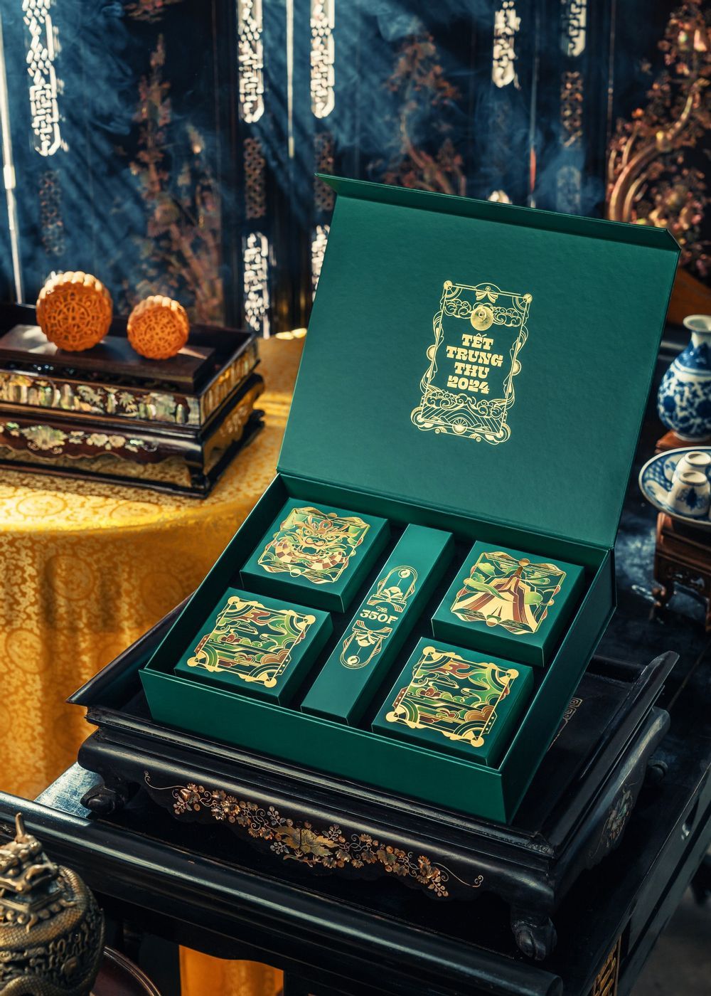Mỗi năm, The 350F lại mang đến một câu chuyện văn hóa dân gian Việt khác nhau qua những BST bánh Trung thu độc đáo, từ Cửu Ngư Quần hội (2020), Tứ Phủ (2022), Tứ Pháp (2023) và mới đây nhất là Ngũ Vị Hoàng Kim. Sự kết hợp hài hòa giữa nét cổ kính của truyền thống và sự sang trọng hiện đại tạo nên một tác phẩm nghệ thuật độc đáo.