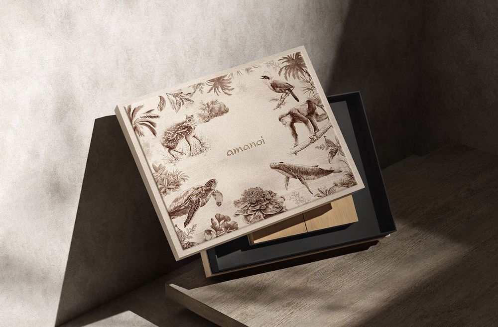 Amanoi đã chọn 6 loài động vật quý hiếm đại diện cho hệ sinh vật rừng và biển để thể hiện trên hộp bánh, bao gồm voọc chà vá chân đen, khướu đầu bạc và hươu chuột - đại diện cho sự đa dạng của các loài sống trên cạn và rùa biển xanh, cá voi xanh và san hô - đại diện cho vẻ đẹp của các loài sinh vật biển.