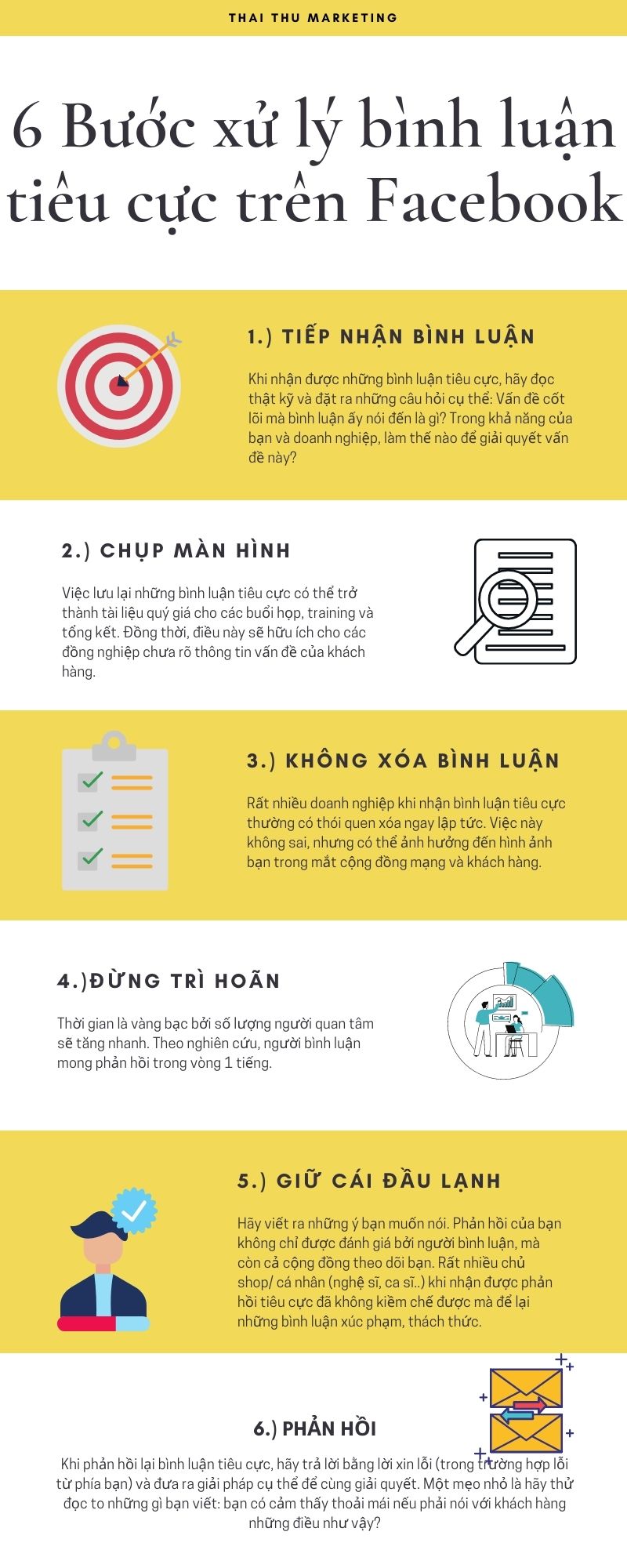 Xem ngay 6 bước phổ biến bạn cần lưu ý khi xử lý bình luận tiêu cực trên Facebook nhé!