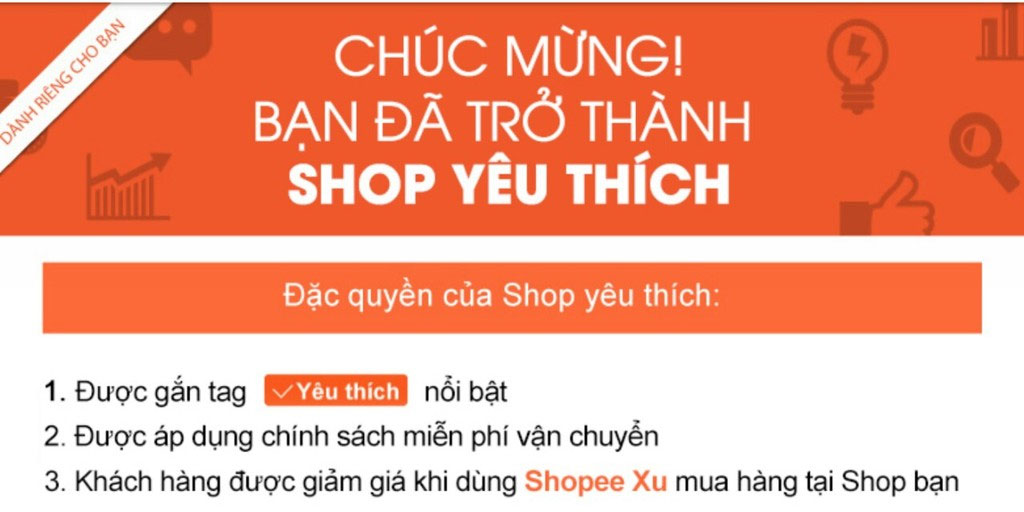 Trở thành “shop yêu thích” sẽ làm tăng độ tin tưởng của khách hàng, khả năng họ chọn mua hàng của bạn cũng cao hơn. Ngoài ra bạn còn nhận được nhiều quyền lợi khác như ưu tiên hiển thị sản phẩm, ưu đãi về phí vận chuyển…