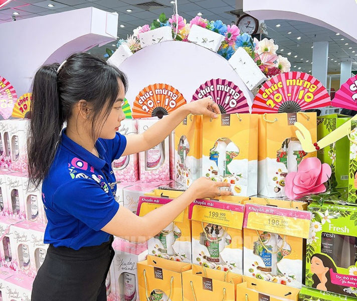Ví dụ, Saigon Co.op tổ chức chiến dịch “Nhân đôi điểm tích lũy” dành cho khách hàng nữ với hóa đơn từ 300.000 đồng trở lên, diễn ra từ ngày 18 đến 20/10. Song song đó là chương trình “Quà tặng ngọt ngào dành tặng nàng” – tặng hơn 3.500 phần quà như hộp bánh quy cao cấp cho khách hàng mua sắm mỹ phẩm từ 500.000 đồng.