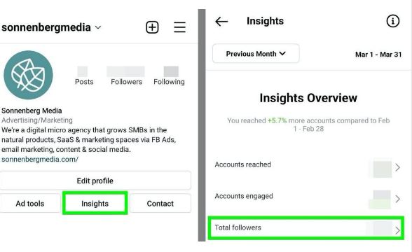 Bước 1: Vào Instagram Insights, chọn Total Followers, kéo xuống và chọn mục Most Active Times
