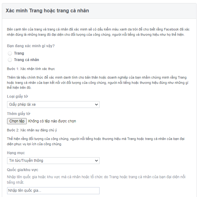 - Khẳng định Fanpage hoặc Facebook cá nhân là chính chủ