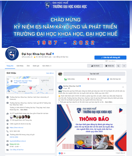 Fanpage của Trường Đại Học Khoa Học Huế do Thai Thu Marketing quản lý đã được cấp dấu tích xanh