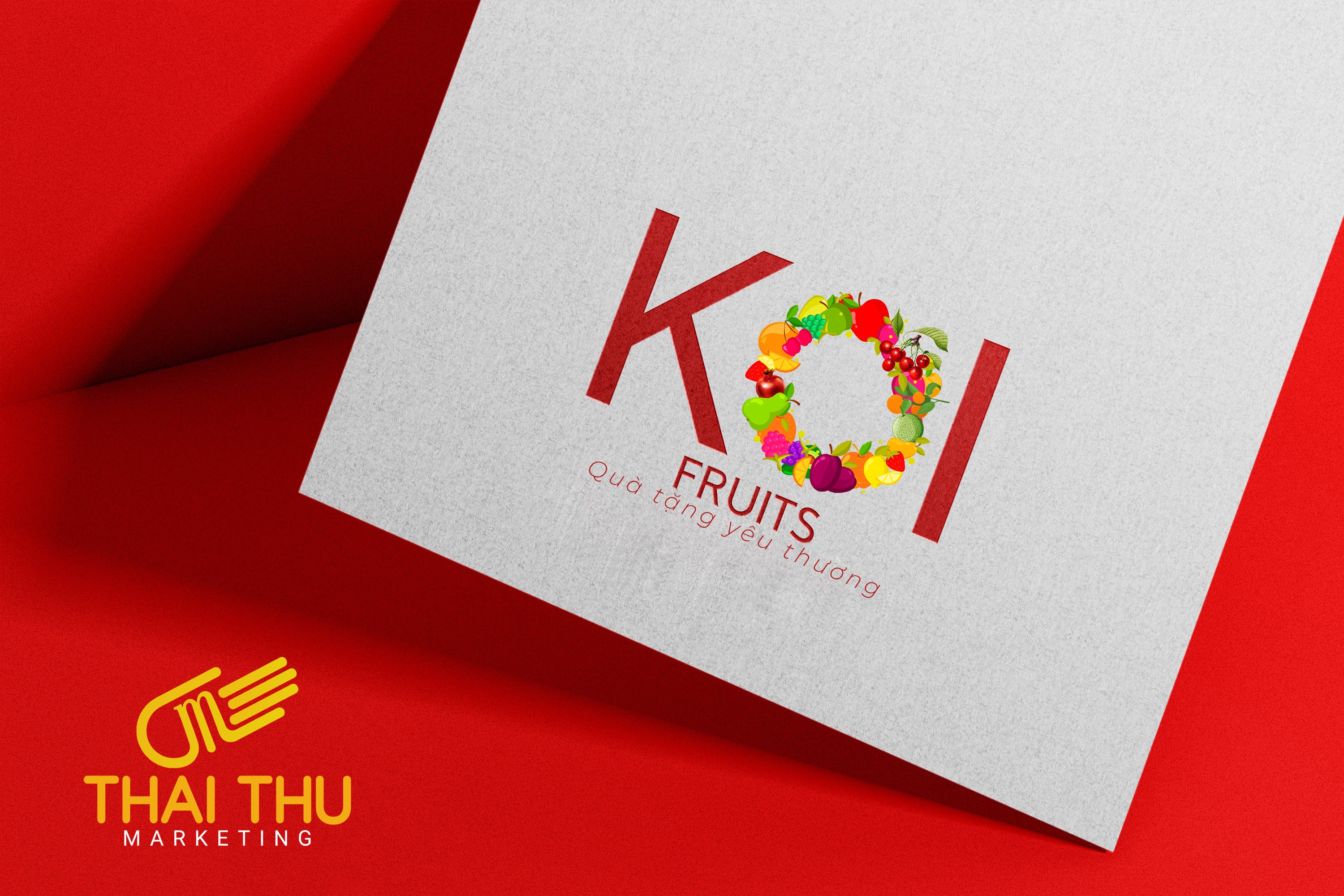 Sản phẩm logo cửa hàng trái cây nhập khẩu KOI Fruits được thể hiện dựa trên ý tưởng các loại trái cây được xếp thành một vòng hoa như món quà tràn ngập yêu thương