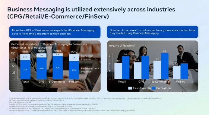 Các doanh nghiệp có thể sử dụng công nghệ như Business Messaging để tạo sự kết nối cá nhân và tương tác với khách hàng một cách hiệu quả. Một cách tiếp cận thông qua mạng xã hội, trang web, và ứng dụng di động sẽ giúp khách hàng dễ dàng tìm hiểu sản phẩm và dịch vụ, sau đó họ có thể mua sắm trực tiếp hoặc tại cửa hàng offline.
