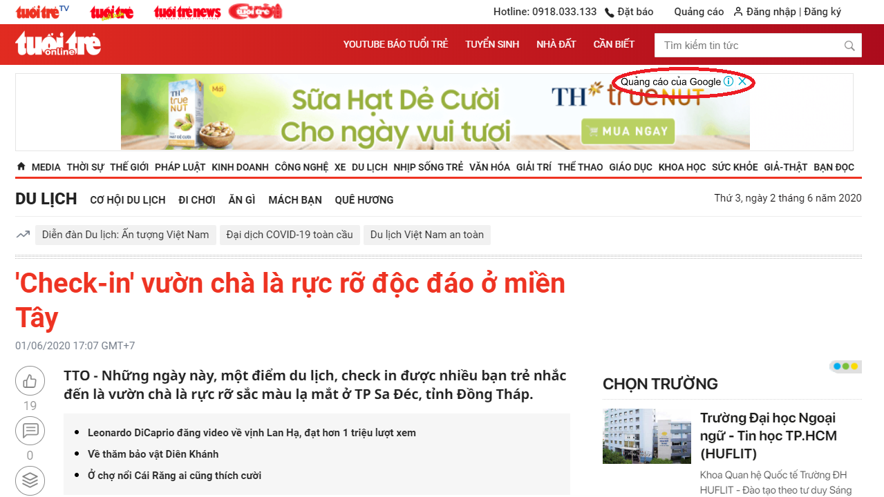 Quảng cáo GDN hiển thị trên trang new.zing.vn