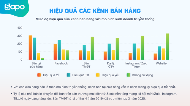 Số liệu hiệu quả các kênh bán hàng . Nguồn ảnh: Sapo