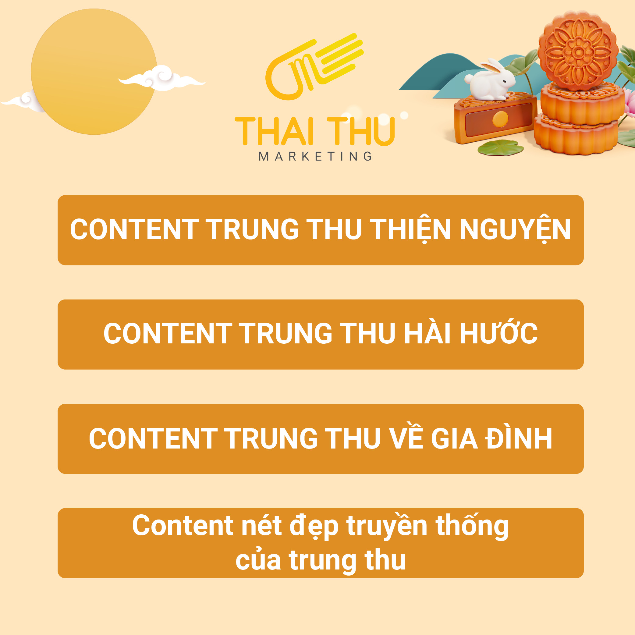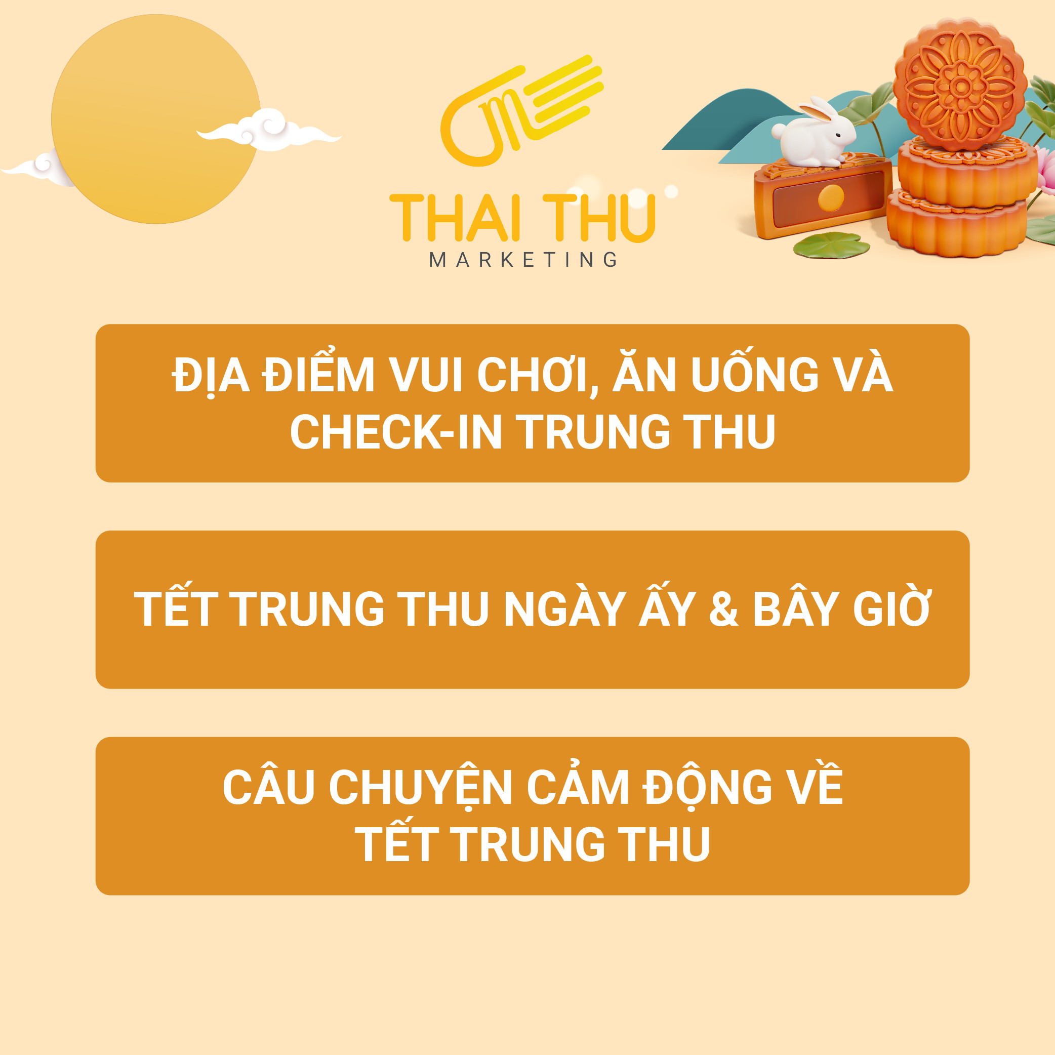 Từ những gợi ý trên đây, chúng tôi hi vọng bạn có thể nắm bắt được những thông tin cần thiết để sáng tạo nội dung Tết Trung Thu. Nếu quý công ty có nhu cầu triển khai các hoạt động marketing mùa Trung thu, hãy liên hệ ngay với Thai Thu Marketing để được tư vấn thêm thông tin.