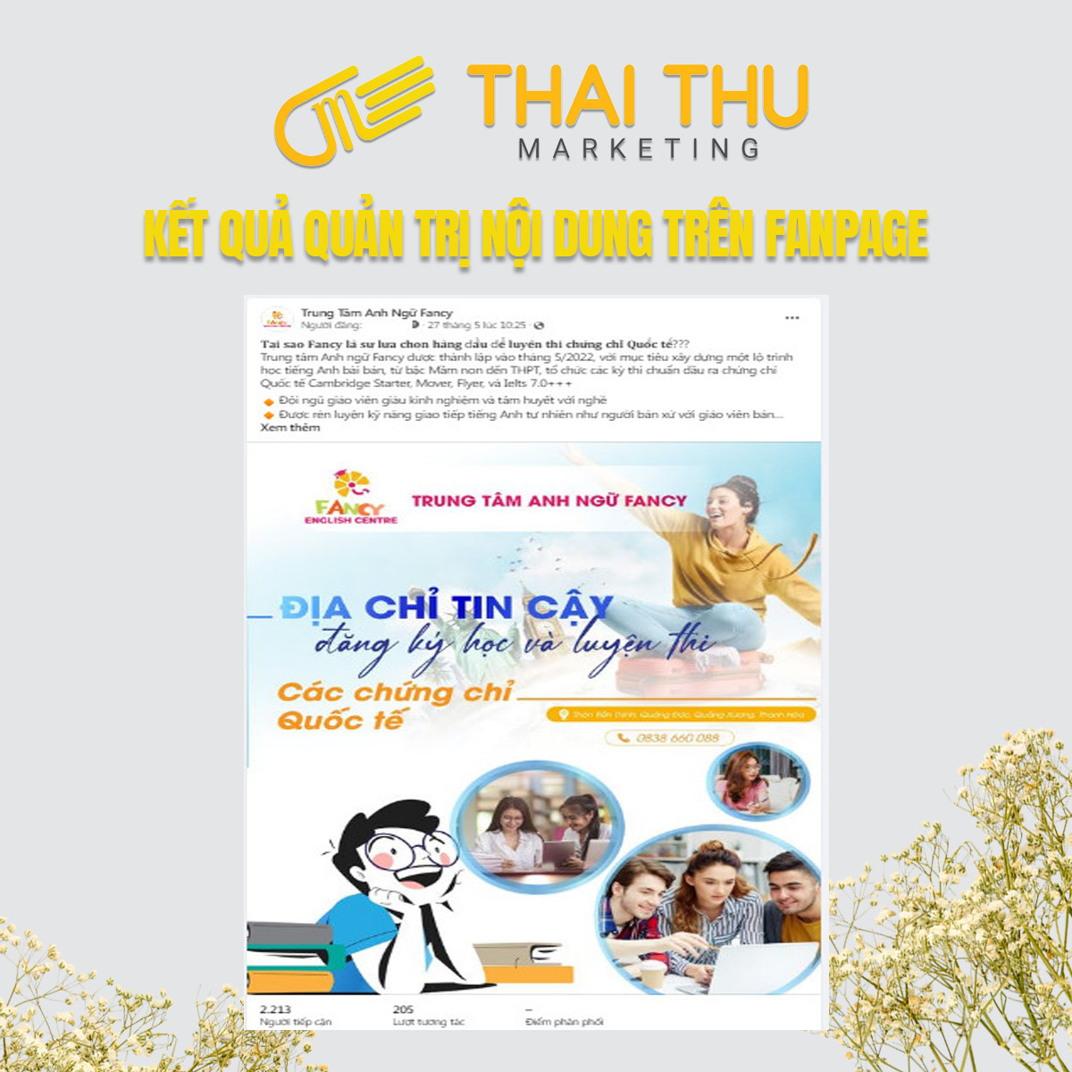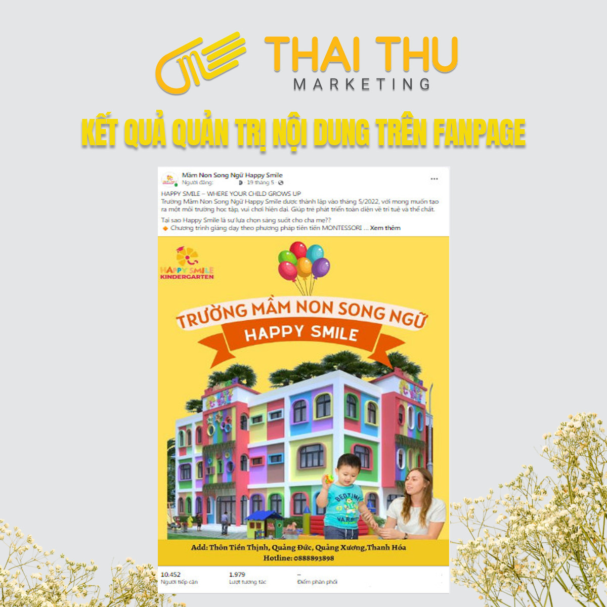 Quản trị nội dung bài viết trên 2 Fanpage: Mầm non song ngữ Happy Smile và Trung tâm Anh ngữ Fancy