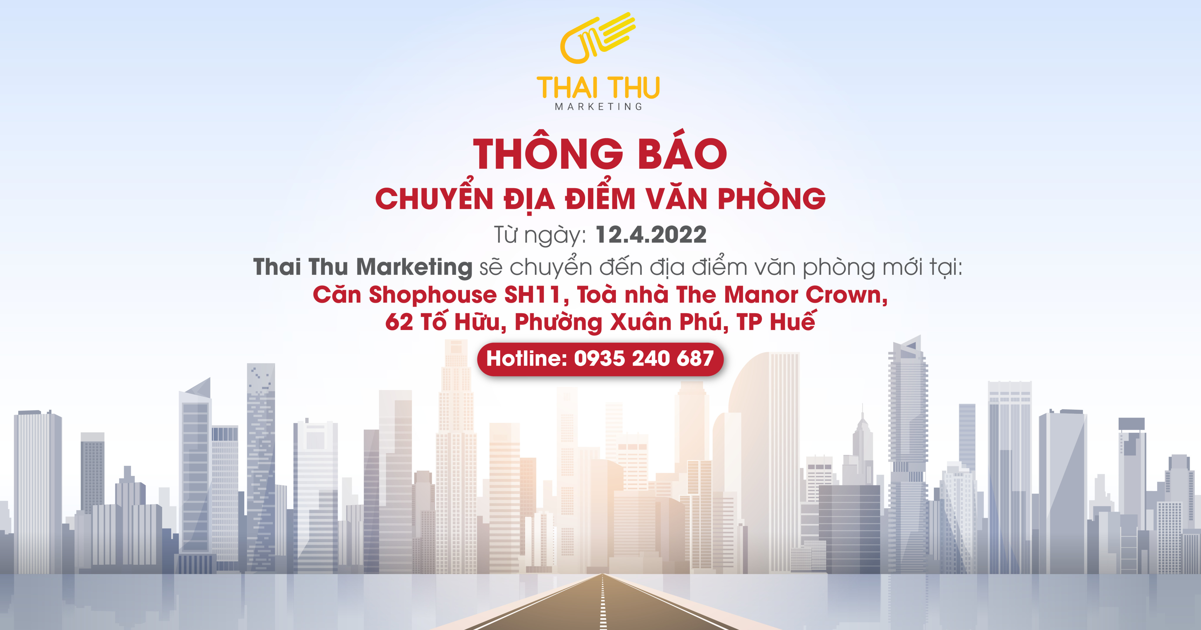 Do nhu cầu mở rộng hoạt động kinh doanh, Thai Thu Marketing xin thông báo chuyển địa điểm văn phòng làm việc: